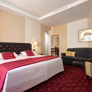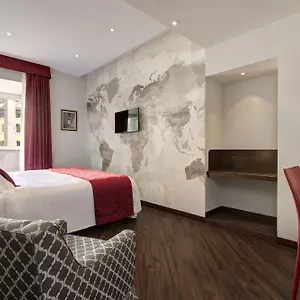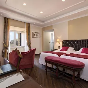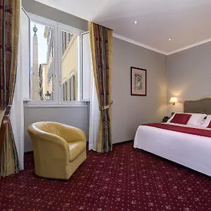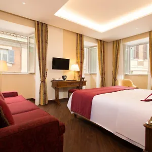 The hotel has 90 guestrooms appointed with a mini fridge bar, a personal safe, and tea/coffee making equipment, and provides ideal lodging in Rome. Guests can enjoy views of the courtyard. Bathrooms have a bidet, a walk-in shower, and a separate toilet.
